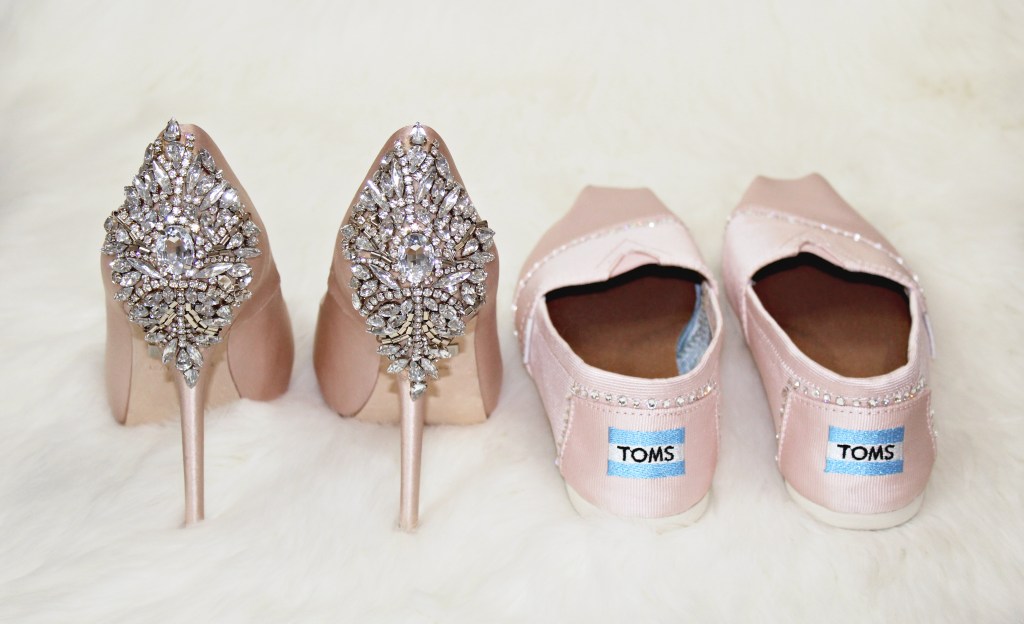 As beautiful as a bride will look on her wedding day, by the end of the day she will be tired! One of the best ways for a bride to prepare for this is to have a backup pair of stylish, comfy, flat shoes to throw on once the high heels have finished their job. I have always been a fan of Toms because they are cute, lightweight, and VERY comfortable. I always described wearing TOMS as a hug for my feet!